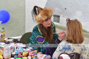 Stadtvogteigasse mit seiner Spielstraße in einen kleinen Bewegungsparcours. Ruhiger ging es beim Kinderschminken von Monika zu, wo bunte Motive auf viele strahlende Gesichter gezaubert wurden. Wer eine Pause einlegen wollte, fand in der Schindler-Schmiede beim katholischen Kindergarten St. Martin Kaffee, Kuchen und einen gemütlichen Platz. Ein beliebter Marktziel war auch das „haus der Bürger K 14 “ des Kunst- und Kulturvereins in der Kosterstraße wo es einen Flohmarkt und fachkundige Führungen durch das historische Gebäude gab.