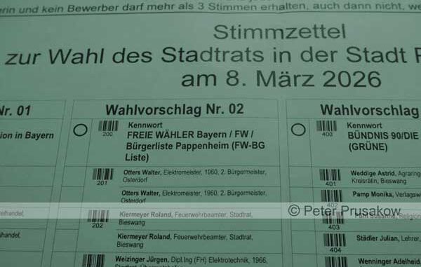 Besonders im Fokus steht dabei die Wahl des Landrats und die Stadtratswahl in Pappenheim. Mehrere amtierende Mandatsträger treten diesmal nicht mehr an. Damit ist offen, wie sich das neue Gremium künftig zusammensetzen wird. Für viele Beobachter dürfte genau dieser Blick auf die künftige Zusammensetzung des Stadtrates zu den spannendsten Momenten des Wahlabends gehören. Wie die Stadtverwaltung Pappenheim mitteilt wird die Sitzverteilung im neuen Stadtrat möglicherweise erst am Montag nach der Wahl, am 09.03.2026 nach der Sitzung des Wahlausschusse öffentlich mitgeteilt.